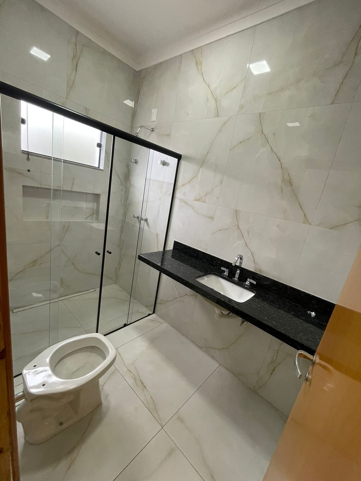 - Banheiros com espelhos, box e pias Bege Bahia