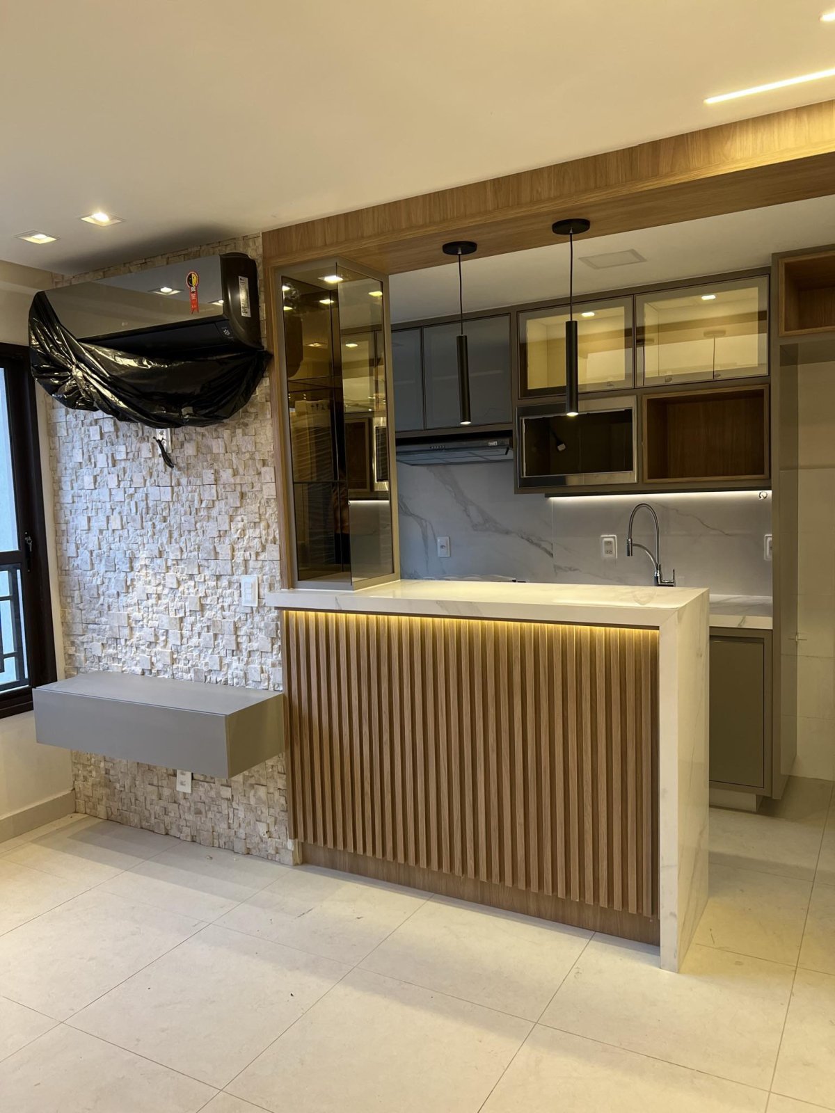 Balcão e armário da cozinha com led embutido
