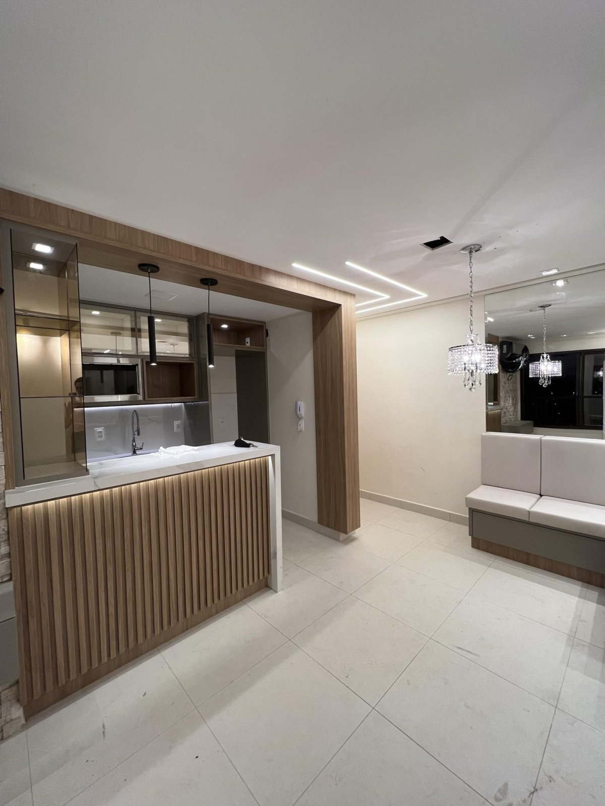 Todo mobiliado com planejado e espelhos