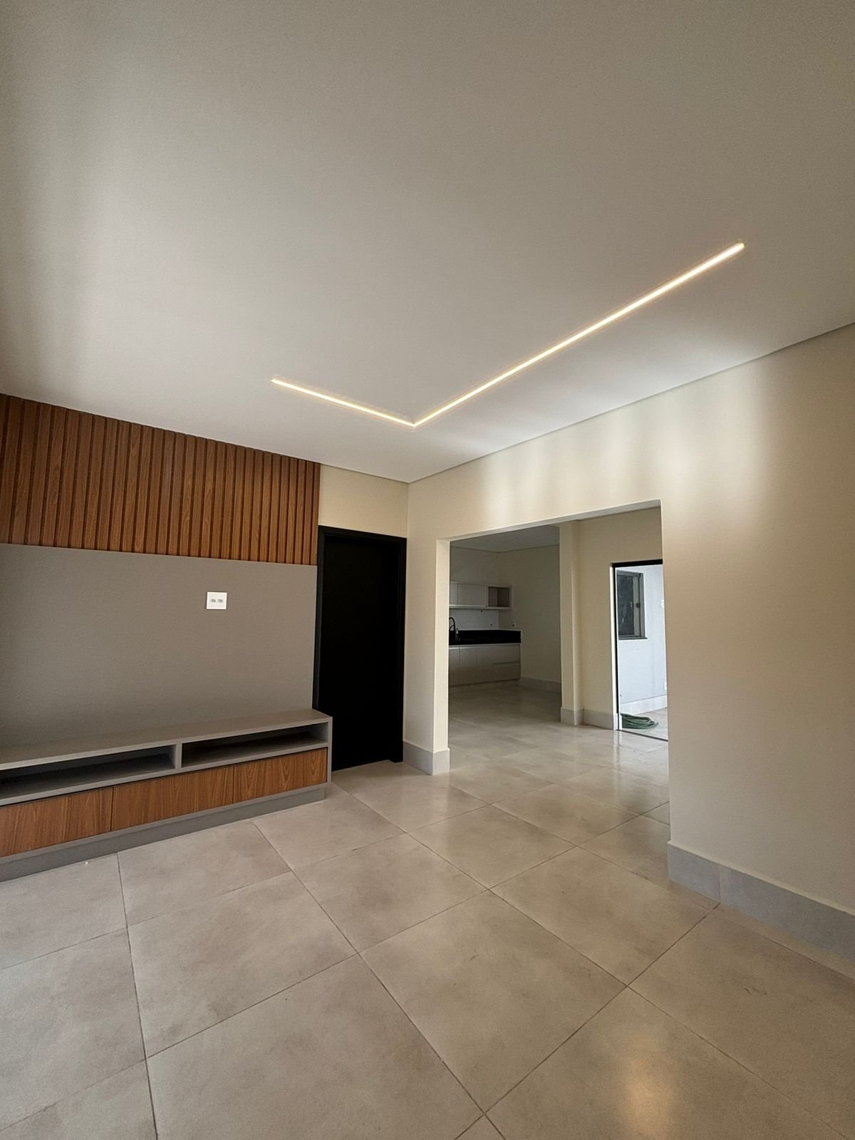 - Cozinha completa e sala ampla com pé direito de 4,5 m